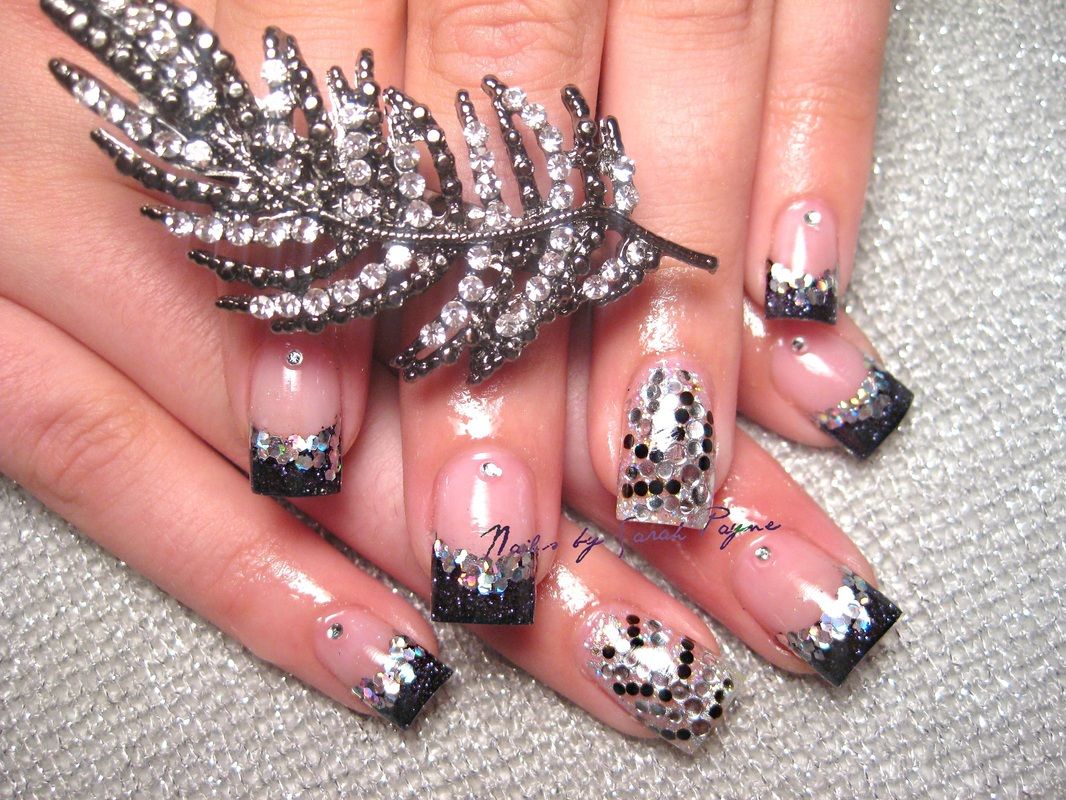 - Glitter French manicure